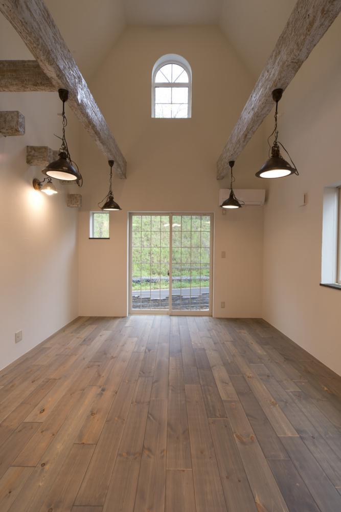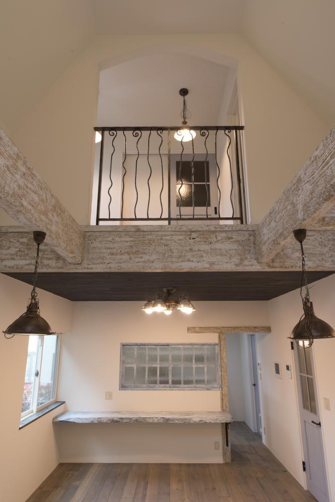 腰折れ天井がチャペルのような雰囲気を演出しています。