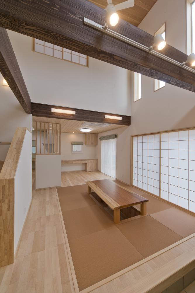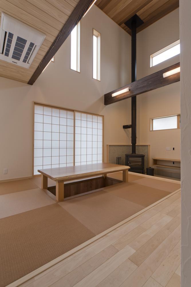 岩沼市に無垢材をふんだんに使用した薪ストーブのある家が完成いたしました。木の香りはもちろん、温かなぬくもりにあふれる住空間が実現。 #ナチュラル #和モダン #吹抜#タタミリビング