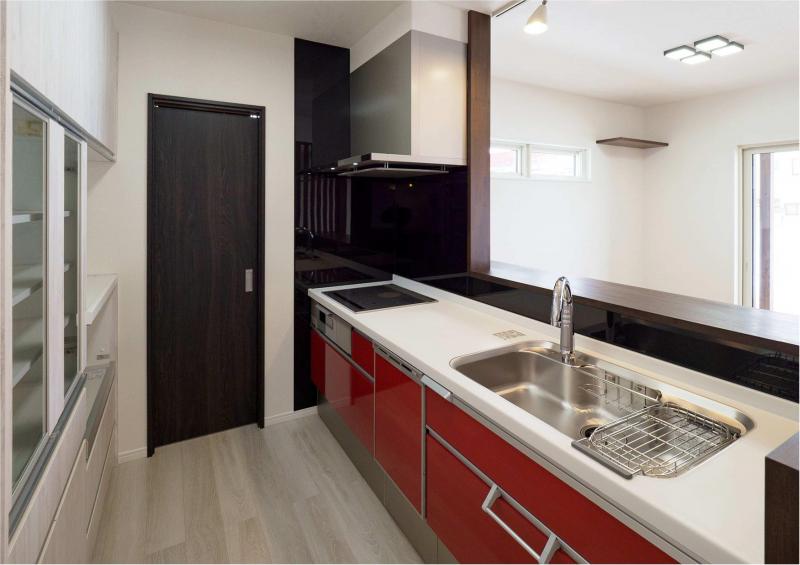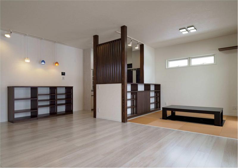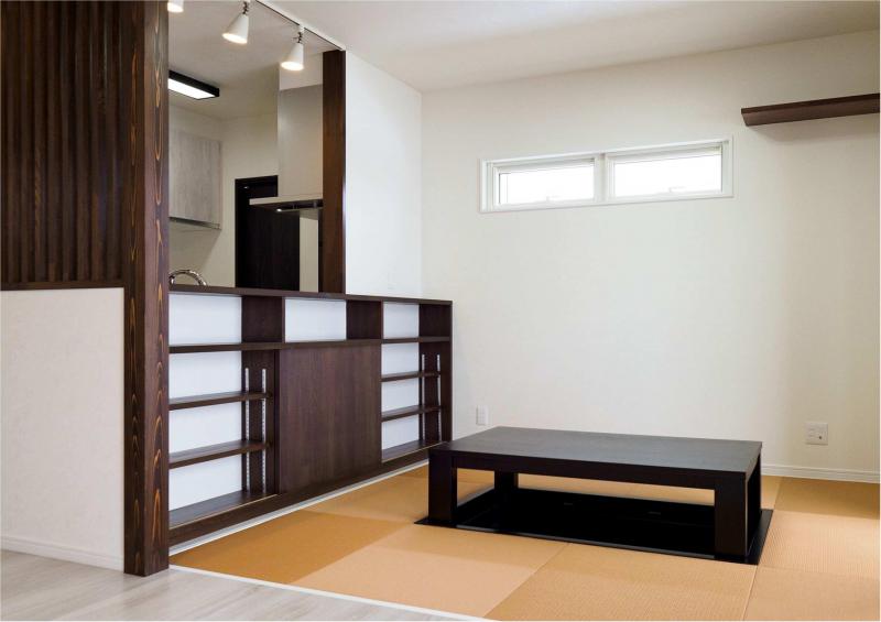 濃い茶色と白を基調とした畳ダイニングのお家が完成しました。外観や内部に格子を取り込んで、スタイリッシュながら和の雰囲気も醸し出しています。広々とした室内にたくさんの収納。施主様のこだわりが随所に見られる素敵なお家です。