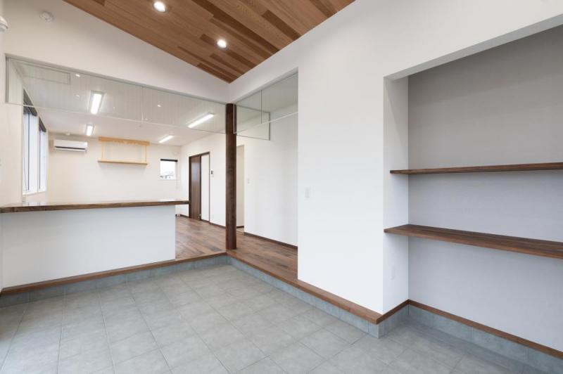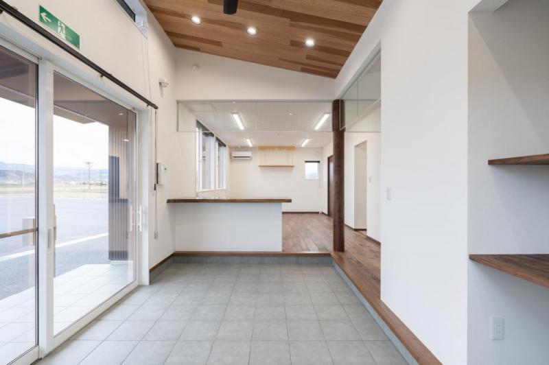 素材にこだわってつくりあげた事務所ができあがりました 人が触れて使いこんでいくことで味のある風合いになり、経年変化を楽しめる無垢材をふんだんに使用してますウォールナット無垢一枚板の受付カウンターがお出迎えしてます中にはいると、ウォールナットOPC(継ぎ目のない一枚ものの無垢材)の床材を使用してるため重厚感・高級感があります#店舗その他