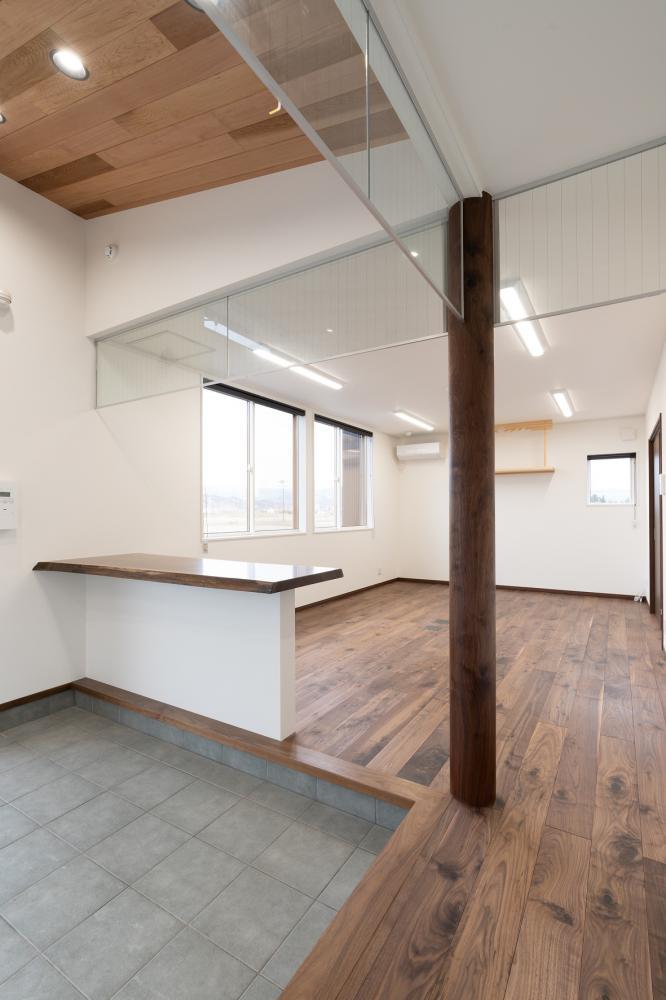 丸柱・框・付框・床材すべてウォールナット無垢