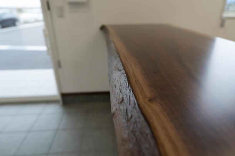 受付カウンターは一枚板のウォールナット