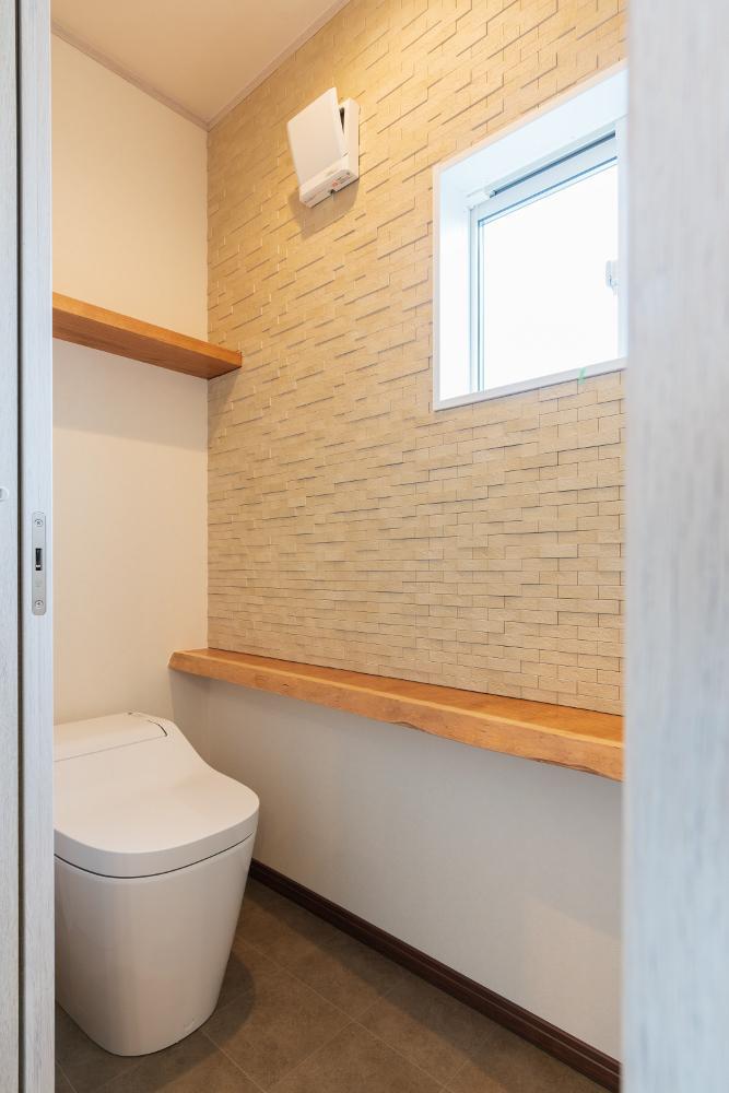 トイレ エコカラットとブラックチェリーの無垢カウンターを採用