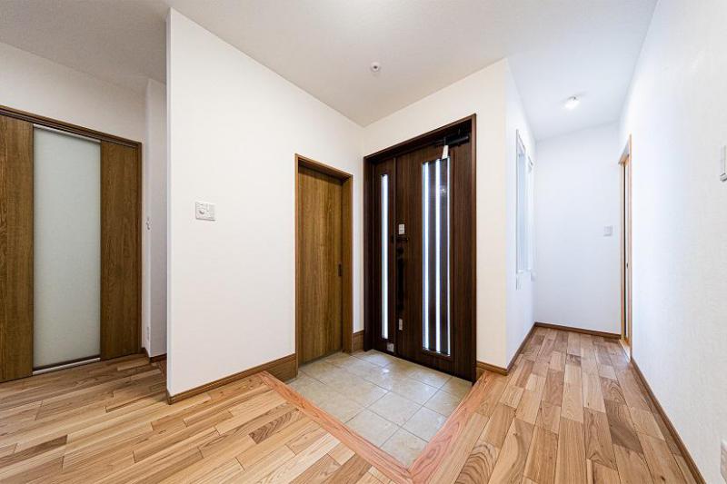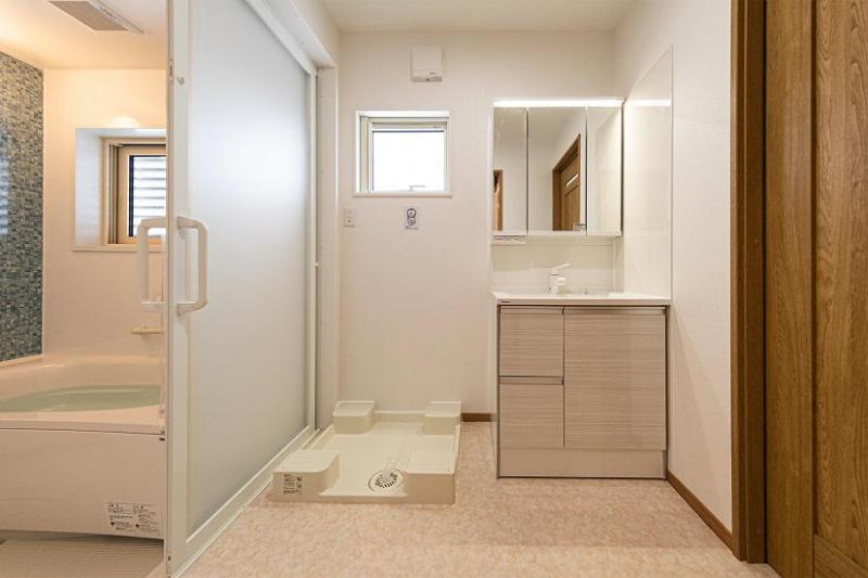 玄関・浴室共用型の二世帯住宅です。アプローチには、地下水散水による消雪設備を備えています。