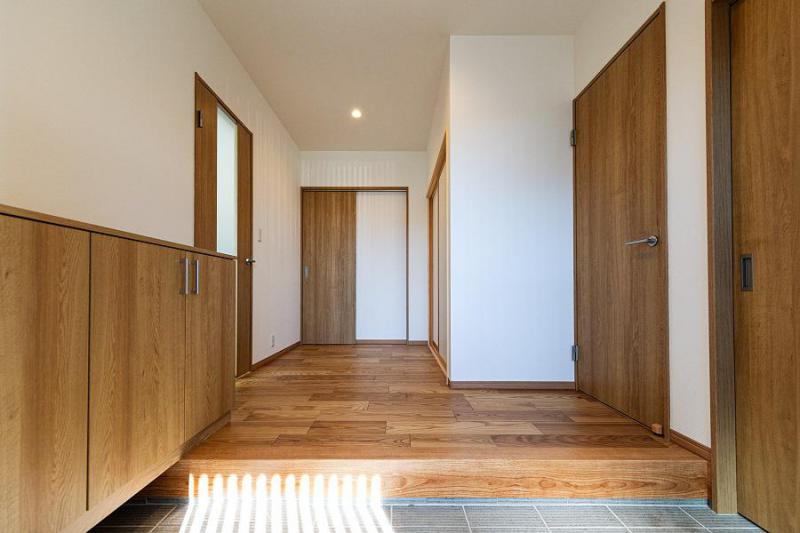 長井市に《3世代が暮らす快適な家》が完成しました。広々とした玄関からの大容量シューズクロークが魅力的。木の香り漂う真壁仕様の二間続きの和室が気持ちのいい空間となっております。