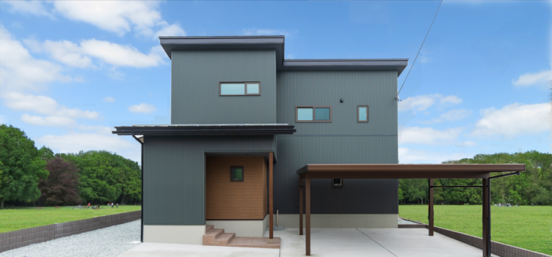 #モダン #シンプルスタイリッシュな外観が目を引くI様邸。リビング階段に設置した大容量のファミリーライブラリー。毎日の読書も楽しみになる間取り。