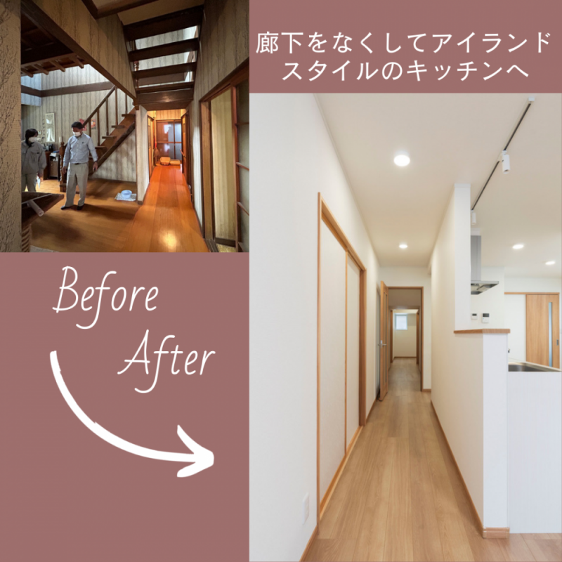 廊下を無くしてアイランドスタイルのキッチンへ