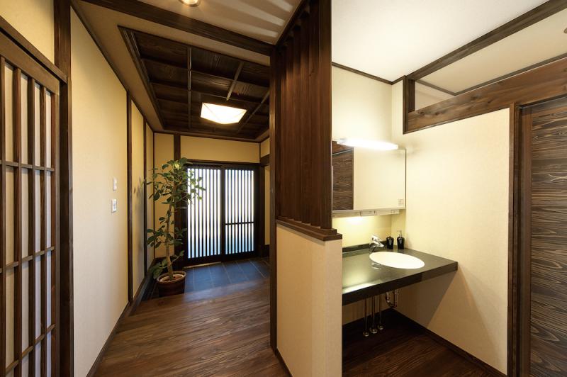 #和室洗面所は脱衣室と別に廊下に配置しました。