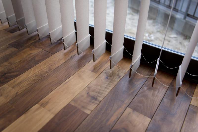 今回は黒い木目と白い木目がランダムに混じる材料をあえて選択されています。