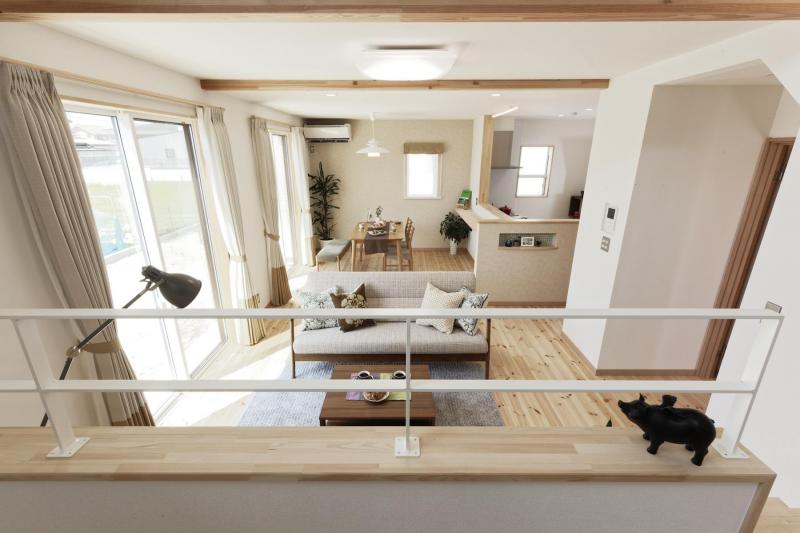 スキップフロアーからLDKを眺む