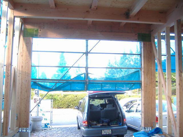 ビルトインガレージの間口開口は門型フレームを使っています。