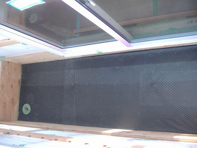 ベランダ防水下地モルタルのラス・アスファルトフェルトを貼りました。