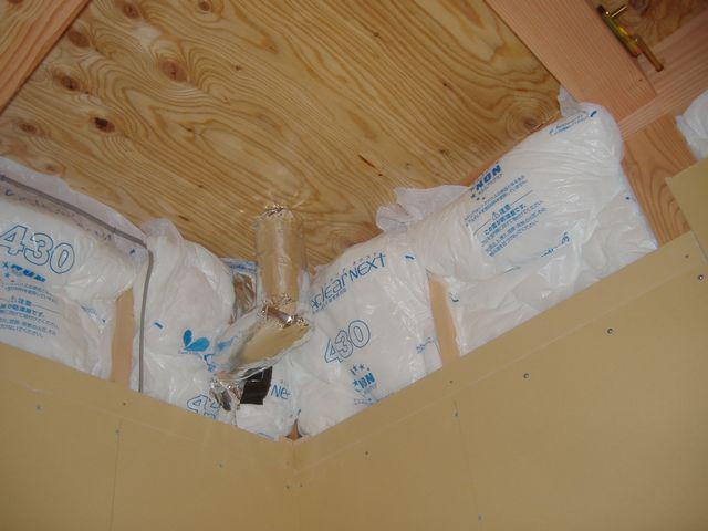 ベランダ排水管、結露防止の為、保温しています。