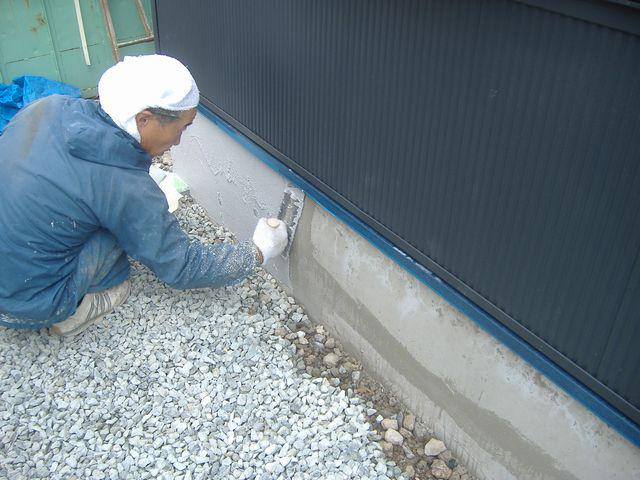 基礎の下地処理、シーラー処理後、基礎仕上げ塗りしています。