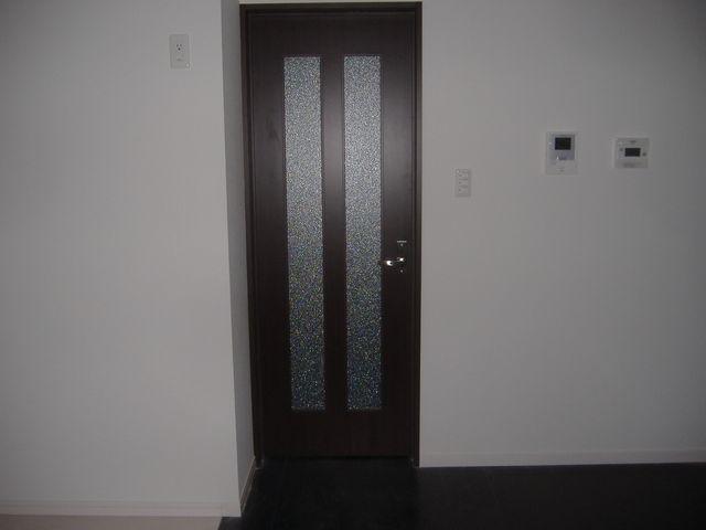 壁にドアが接触するところは、マグネットの戸当たりを取り付けてあります。