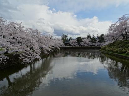 お堀の水面に映る桜が更に美しさを際立たせます。