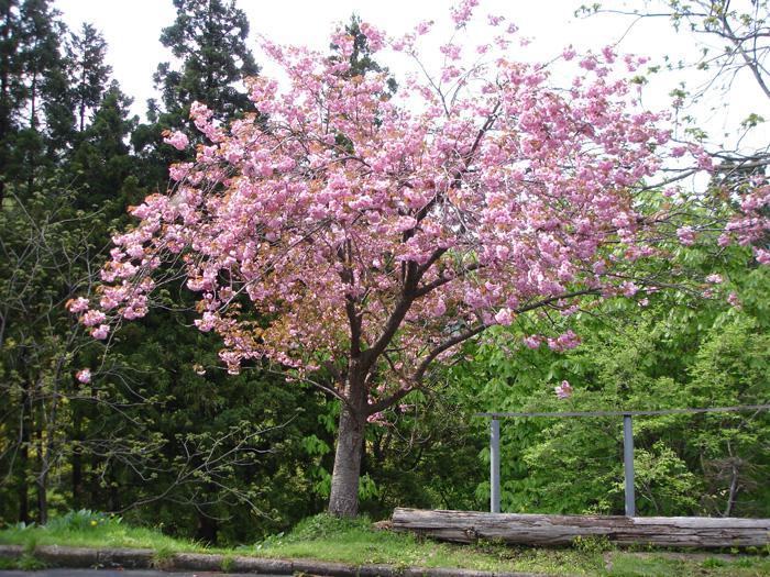 替わりに八重桜がきれいなピンク色の花を咲かせてくれました。しばらく鑑賞できますよ。丁度当館の正面駐車場のそばに咲いています。