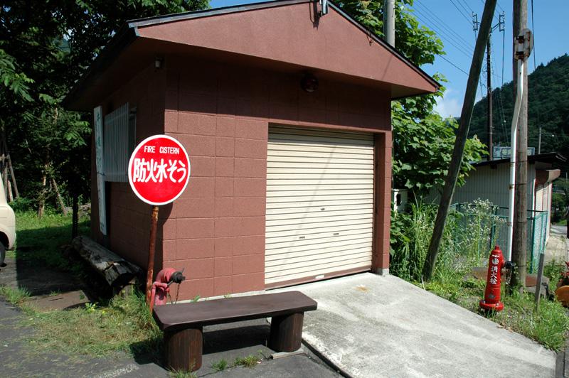 当館向かいの自主防災ポンプ倉庫とその地下?の防火水槽、そして消火栓です。現実の守り神です。いざ、と言うときには一番頼りにしないといけない施設ですね。秋には消火栓や水槽の水取り入れ口にはナイロンを掛けて凍結防止。春先には整備点検。