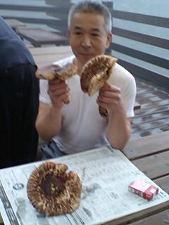 またまた やってくれました。(ちょと 山へ きのこ狩りに)なんて言って見てください。このきのこ 皆さん判りますよね。 あの 松茸です、それも3本もですよ。 あっぱれ あっぱれ この人には 毎年やられます。一番大きいもので 430グラム あったそうです。
