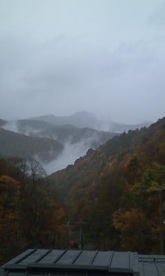 本日は 明け方より天気予報どうり 雨が降り続いています。紅葉した葉に重苦しく冷たい雨が 降り続いています。