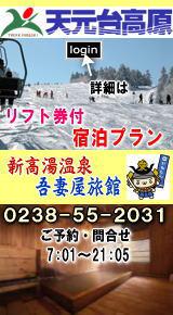 天元台スキー場と新高湯温泉吾妻屋旅館の共同宿泊プランを案内するページ出来ました。