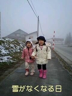 幼稚園バスが来るまでの僅かな時間、お散歩しているのは家中ではもめ事絶えないお二人(2とbR)。 巷のウワサでは仲良し姉妹で通っております。 12月16日朝時点で、この辺(米沢市関)は殆ど雪ありませんね。 山奥とは違います。