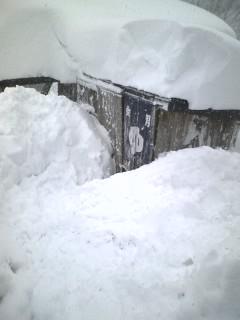 すごいです。ここ3日間の雪で ごらんような雪の量になってしまいました。只今、通路確保しています。疲れました、全長 4mぐらいを確保するのに40分から1時間かかってしまいました。