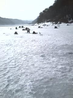 奥の方は まだ凍っていませんので 近くは 危険地帯です。氷の厚さは 私のやってきた所で(一本松より奥20m)20cmから25cmでした。早く安定した状態になって欲しいです。