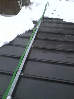 山の宿の雪下ろしの 最後の極めは 消雪帯を屋根に上げて 温泉の湯をここから 流します。これで 軒先の氷を 下ろします。すこしでも 楽に作業しないとと 考えだされました。