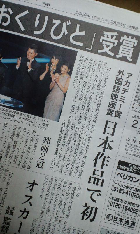 「おくりびと」は上映期間こそ終了していたようですが、受賞を記念して