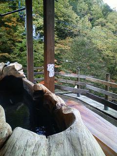 ハイ と、いわわけでですね。 こちら標高1126・・・いいふろ!の新高湯温泉というところに紅葉前線調査に来ているわけでございます。 まぁ紅葉の色付が現在進行形という按配ですね。 しかし、なんですな。 この巨木足湯!? 足湯っていうと、もうチョイサラッとした造りなんでしょうが、ここのはデーンと構えて、風呂か!? って突っ込みたくなるんでございます。