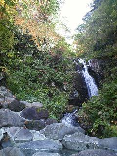 滝見露天風呂も紅葉バージョン。 滝のマイナスイオンを浴びながらの湯浴みは一段と爽快感up