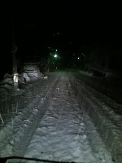▼2日夜の白布温泉街道路“積雪”