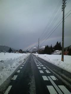 冬に虹を見る機会なのですが、何気に走行していたら雨空に虹を発見! 県道温度計表示は+6℃。 屋根の雪も、道路の雪もどんどん溶けて行ってます。 夕方からは雪になるという予報。 異常気象もいずれ例年並みという言葉に置き換わる日も近いでしょうか。