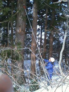 この頃の 私は 魚業あり(わかさぎ釣り)林業ありと多種と幅広くやっています。本日は 宿の周りの防災林の枝打ち作業を行っています。なれない作業で 体は あちこち 痛いです。柄の長いノコギリで 枝を一本一本切っていく気のながーい作業です。