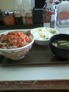 よくオーダーします。キムチ牛丼+サラダセット うまい うまい
