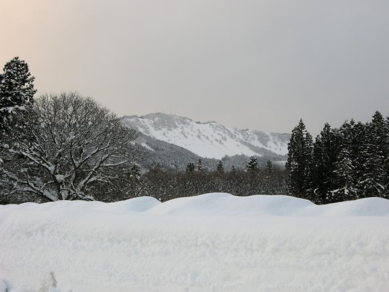 雪の田んぼや林の奥のなでら山。