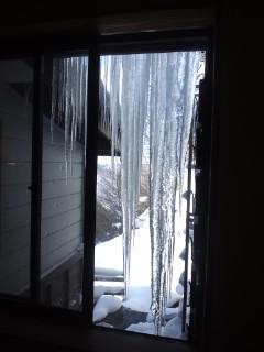 ▼チェ・ホンマン級のツララを窓越しに見る。