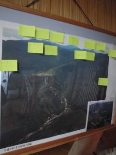 西吾妻の第六天魔王ことSDホンダ師匠が訪問。 ロビーに何気にぶら下げているこの周囲の空撮図に「・・・ここは安達太良・・ これ中大巓・・」 ツイート!? これこそ!有り難き御つぶやき!! ヤバッと一時停止ボタン(首の付け根にある?)を押し、付箋とボールペンを準備。再生ボタン(右耳を左に回す)で再開・・少し巻き戻して、空撮はされていたがドコがドレだか不明なこと数年あまり。 ついに、山の名称等が加わり、魂が吹き込まれたのであります。 清書するのがいいのか、この付箋ベタベタの臨場感?がいいのか。 SDホンダ師匠 ありがとうございます。