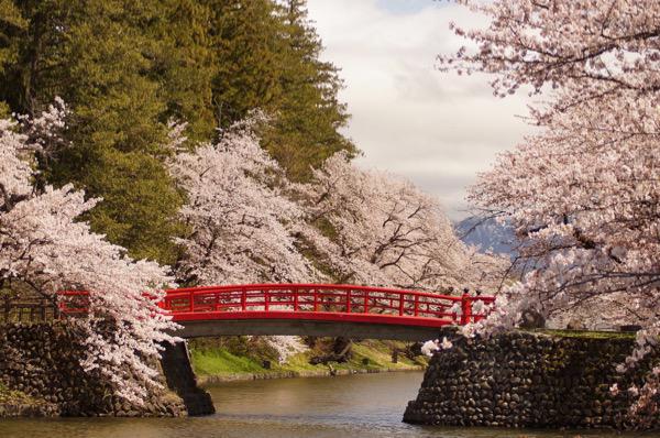 米沢市の松が岬公園の桜情報【画像は過去の画像です】山形県置賜地方には桜回廊、花回廊として、桜や花の名所がたくさんございます。米沢市の松が岬公園の桜も、お堀沿いに200本の桜が咲き誇る様子はとても綺麗です。お堀の水面に映る桜が更に美しさを際立たせます。今年は例年よりも雪が非常に多く、4月になっても寒い日が続いており開花予想も難しい状況ですが、米沢の松が岬公園の桜は4月13日前後に開花するのではないかと思われます。満開時期は、開花後の気温にも影響されますが通常開花より5,6日後ですので4月18日〜20日頃に満開になる予想です。この松が岬公園 上杉神社はお堀沿いに約200本もの桜ソメイヨシノが咲き誇る、置賜でも有数な桜の景勝地、写真撮影スポットです。特に、お堀に架かる赤い橋(菱門橋)を入れた桜の風景は、とても風情があってオススメです。※残念ながら菱門橋が昨年崩落してしまい、橋のところには立入禁止となっております。夕暮れ時も素晴らしくまた、桜が散った時に水面を染める花筏の様子もとても綺麗です。数年前には、この松が岬公園の桜の風景が絶景を通して日本の魅力を世界に届けるサイト「ZEKKEI Japan」の「プロカメラマンが絶賛する世界に伝えたい日本の絶景 春のZEKKEIアワード」に選出されました!「ZEKKEI Japan」「春のZEKKEIアワード」写真の撮影された場所は、上杉神社南側で『菱門橋と水面に映る満開の桜』が絶景と評されています。さらに夜にはライトアップも実施されさらに美しい風景を見せてくれます。ライトアップは 4月上旬〜5月上旬の予定時間は夕方18時〜21時まで昼、夕方、夜 様々な美しい風景をお楽しみください。これから開花までは不定期で更新いたします。参考までに過去の桜開花状況をご覧ください。 令和6年 開花4月9日 満開4月14日令和5年 開花4月2日 満開4月8日令和4年 開花4月13日 満開4月18日令和3年 開花4月5日 満開4月15日令和2年 開花4月9日 満開4月17日平成31年 開花4月15日 満開4月22日平成30年 開花4月7日 満開4月15日平成29年 開花4月17日 満開4月23日平成28年 開花4月 9日 満開4月15日平成27年 開花4月16日 満開4月22日平成26年 開花4月18日 満開4月25日平成25年 開花4月18日 満開4月28日平成24年 開花4月26日 満開4月29日平成23年 開花4月26日 満開4月29日平成22年 開花4月25日 満開4月30日平成21年 開花4月14日 満開4月18日 平成20年 開花4月18日 満開4月22日平成19年 開花4月18日 満開4月24日平成18年 開花4月26日 満開5月1日平成17年 開花4月26日 満開4月29日平成16年 開花4月14日 満開4月17日平成15年 開花4月17日 満開4月22日平成14年 開花4月9日 満開4月14日 平成13年 開花4月18日 満開4月23日平成12年 開花4月27日 満開5月1日平成11年 開花4月19日 満開4月24日平成10年 開花4月13日 満開4月18日平成9年 開花4月18日 満開4月23日平成8年 開花4月27日 満開5月2日