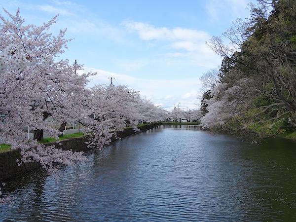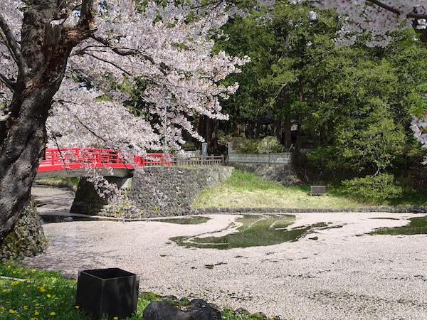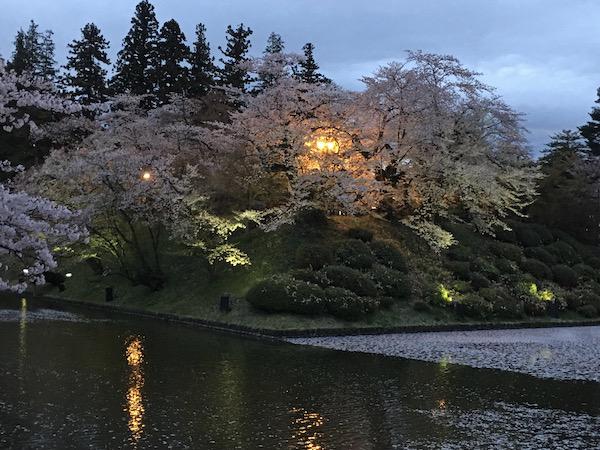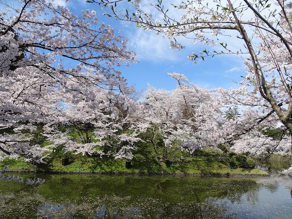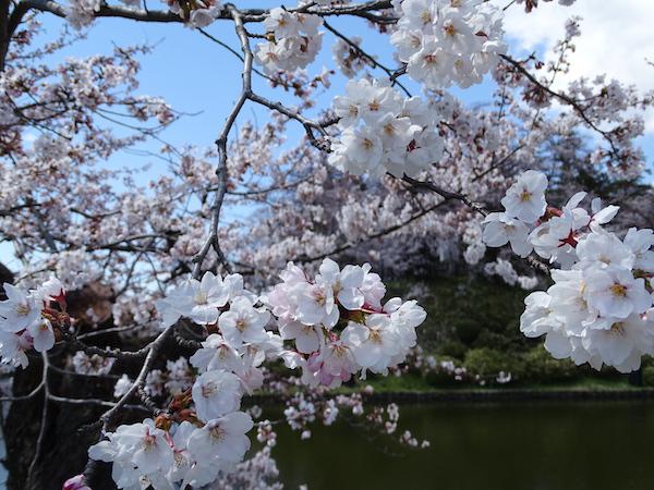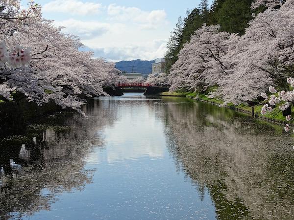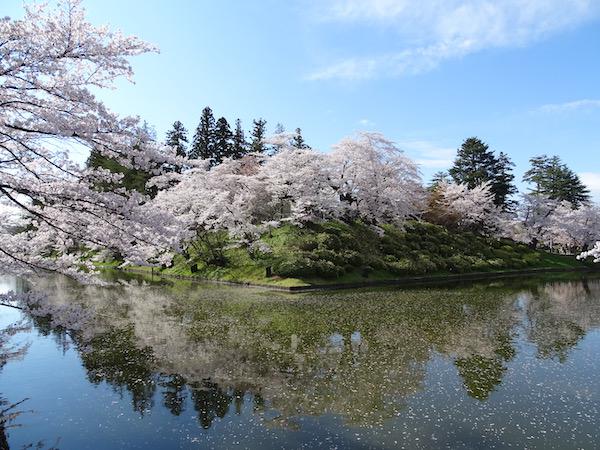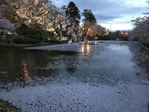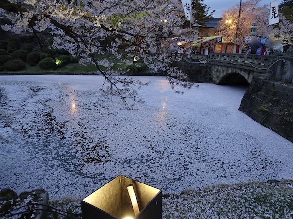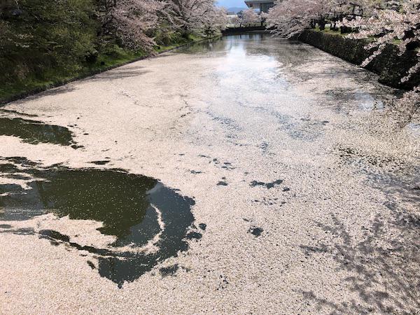 2020-4-29 上杉神社のお堀に浮かぶ桜