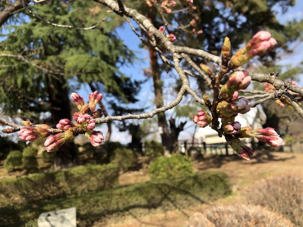 標準木はまだ蕾ですが、膨らんでピンク色です。もうすぐ開花です。