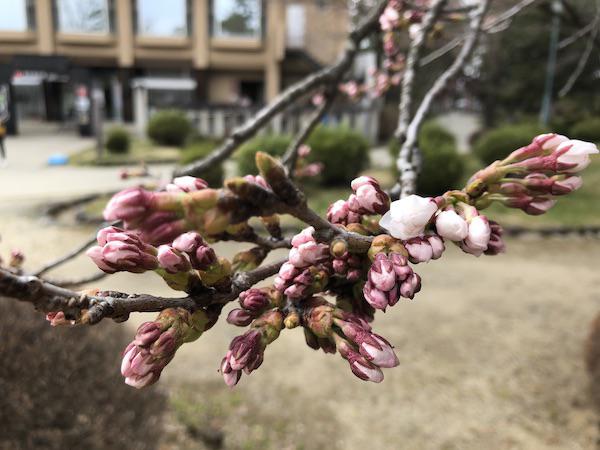 陽の当たるところの桜は、2分、3分です。