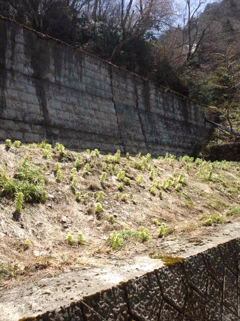 ▼秘湯の宿裏にはフキノトウ畑?(観賞用)