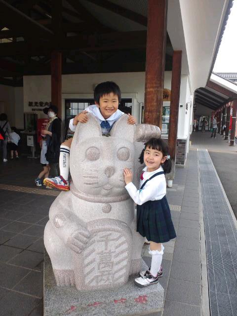 道の駅「喜多の郷」(福島県喜多方市)に某幼稚園バス旅行で立ち寄った際のヒトコマ。この特大招き猫は“いいね!”自己責任のもと、やり放題。放し飼いのちびっ子たちも大喜び。 「ドジして怪我すんなよ」と注意をはらう。ここで怪我したら、せっかくの自由が規制されてしまうんだよ。とフォースの基本を学ばせたかは定かではない。