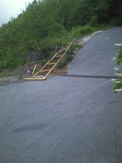 なぜ施錠されているゲートが? 開け放たれている=開錠or破壊 ということになるが、どちらでもない所がポイントの一つ、施錠された反対側の回転ヒンジ(回転軸)を引き抜いて侵入(迷いこむ?)のようだ。なお、この回転軸を引きぬくには、3人ぐらいで明確な意図を持って引きぬくしかない。間違って?とか、風が強くて??引き抜けるシロモノではない。