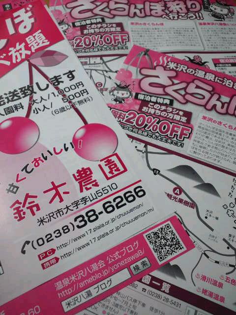 いよいよ!果樹どころ米沢の観光さくらんぼ園が6月19日〜7月上旬オープンをむかえました。 米沢八湯の宿には、宿泊特典として指定さくらんぼ園(3園)もぎ取り食べ放題【入園料20%OFFのチラシ】がございますので、この機会、まさに期間限定のこの2週間(6/19〜7/3)に、温泉宿とさくらんぼ園のハシゴはいかがでしょう。 ワタシは幼少期に食べ放題し過ぎて、おとなになってからアマリ・・・という人様から見ると「なんなん?!」ということではありますが、どうでしょう。食べ過ぎてもう・・・という経験を是非、今(^_^;)
