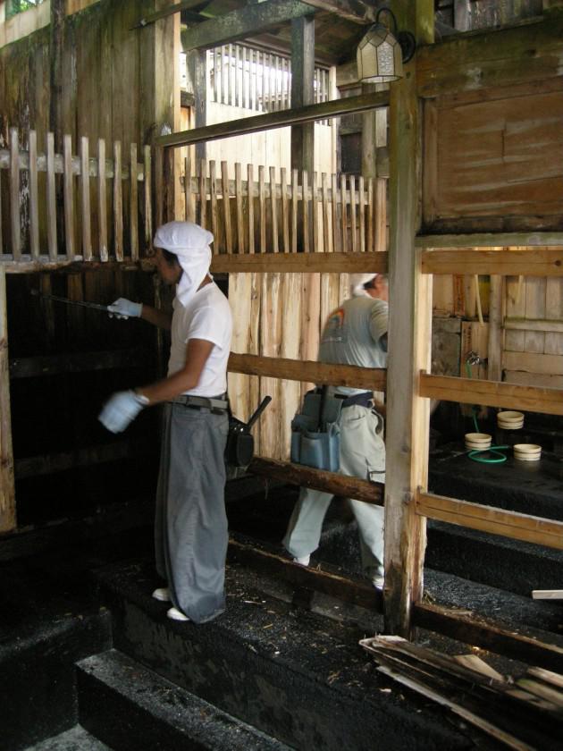 7月25日から3日間、当館名物である湯滝のお風呂の工事を行いました。