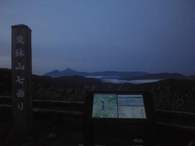 奥白布から車で20分。西吾妻スカイバレーへ 県境を超えた福島県側から見る磐梯山。 あと30分この場に留まれば、いい朝焼けを撮れたかなぁ^^; そう思った午前5時すぎ。
