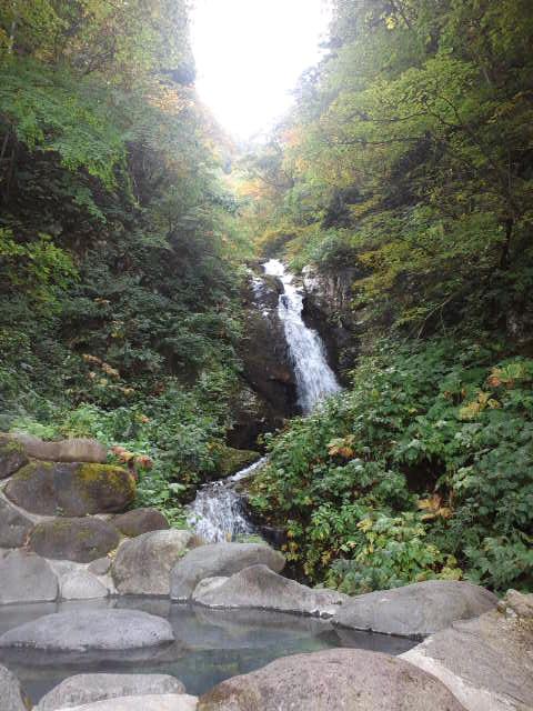 ▼10/5滝見風呂紅葉具合【奥白布新高湯 吾妻屋旅館】